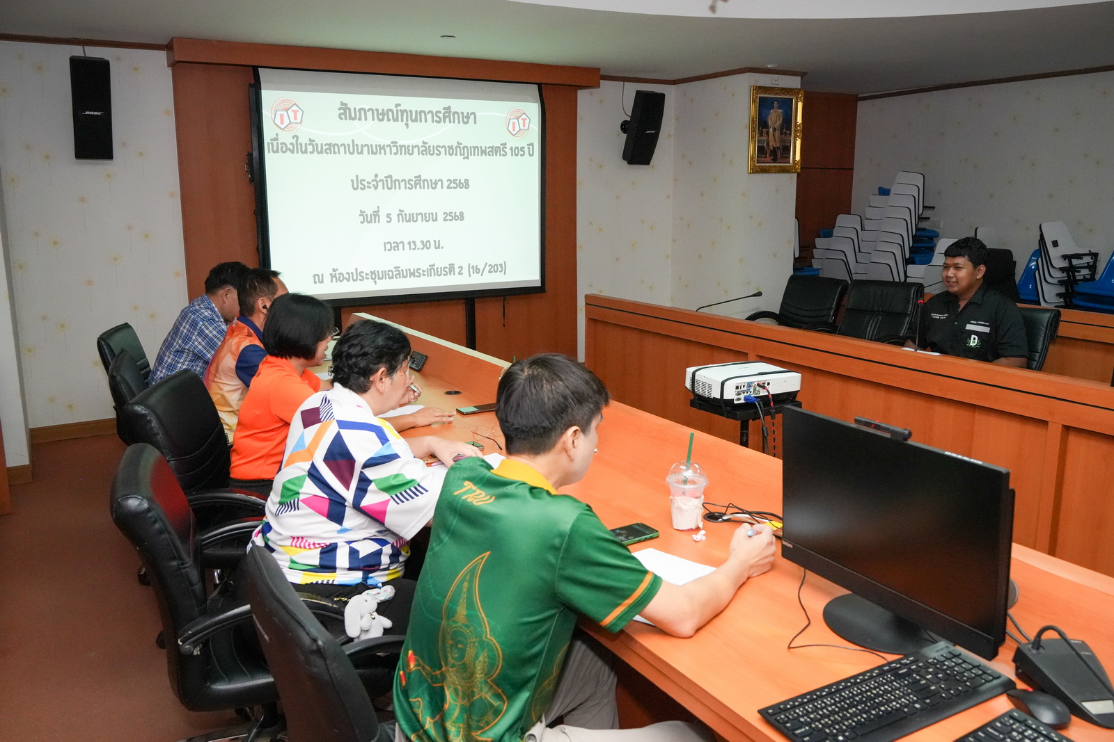 เมื่อวันที่ 5 กันยายน พ.ศ. 2568 ณ ห้องประชุมเฉลิมพระเกียรติ 2 ชั้น 2 อาคารคณะเทคโนโลยีสารสนเทศ (อาคารเฉลิมพระเกียรติ 80 พรรษาฯ) อ.ธนชัย ปฐมรัตน์ หัวหน้าสาขาวิชาเทคโนโลยีดิจิทัล วิชาเอกวิทยาการคอมพิวเตอร์ คณะเทคโนโลยีสารสนเทศ มหาวิทยาลัยราชภัฏเทพสตรี เป็นประธานการสัมภาษณ์นักศึกษาของคณะเทคโนโลยีสารสนเทศ จำนวน 10 คน เพื่อคัดเลือกให้เข้ารับทุนการศึกษาของมหาวิทยาลัยราชภัฏเทพสตรี และทุนมูลนิธิ รศ.สุรพันธ์ ยันต์ทอง ในงานมหกรรมเทพสตรี 105 ปี ในสัดส่วนของคณะเทคโนโลยีสารสนเทศในประเภทขาดแคลนทุนทรัพย์ จำนวน 2 ทุน และทุนมูลนิธิ รศ.สุรพันธ์ ยันต์ทอง จำนวน 1 ทุน โดยจะมีการประกาศผลการคัดเลือกผ่านทางเพจเฟซบุ๊กของกองพัฒนานักศึกษาในวันที่ 8 กันยายน พ.ศ. 2568 และนักศึกษาที่ผ่านการคัดเลือกจะเข้ารับทุนการศึกษาในงานมหกรรมเทพสตรี 105 ปี ในวันที่ 11 กันยายน พ.ศ. 2568