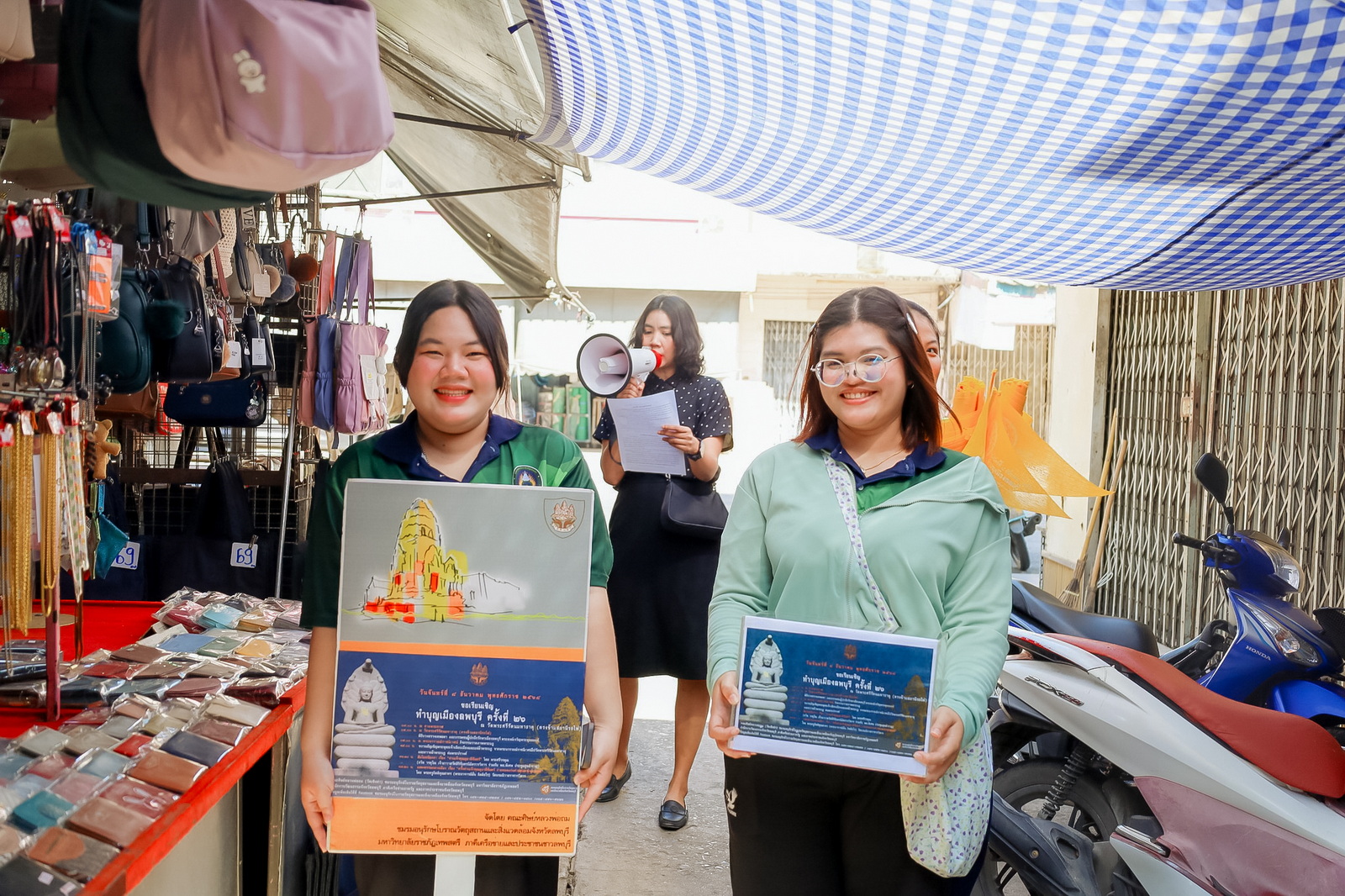 เมื่อวันที่ 2 และ 4 ธันวาคม พ.ศ. 2568 ณ บริเวณตลาดสดเทศบาลเมืองลพบุรี และตลาดบนเมือง อ.เมืองลพบุรี จ.ลพบุรี อ.เสาวพร สุขเกิด รองคณบดีฝ่ายกิจการนักศึกษาและพันธกิจสัมพันธ์ คณะวิทยาการจัดการ มหาวิทยาลัยราชภัฏเทพสตรี พร้อมด้วย ผู้ช่วยคณบดี คณาจารย์ บุคลากร และนักศึกษาคณะวิทยาการจัดการ เป็นผู้แทนมหาวิทยาลัยราชภัฏเทพสตรี ลงพื้นที่จัดกิจกรรมประชาสัมพันธ์และรับบริจาคเงินทำบุญจากพุทธศาสนิกชน เพื่อร่วมทำบุญในงานทำบุญเมืองลพบุรี ครั้งที่ 26 ประจำปี พ.ศ. 2568 ซึ่งได้รับยอดเงินทำบุญในครั้งนี้ จำนวน 11,099 บาท ทั้งนี้ งานทำบุญเมืองลพบุรี ครั้งที่ 26 ประจำปี พ.ศ. 2568 กำหนดจัดขึ้นในวันที่ 8 ธันวาคม พ.ศ. 2568 ณ วัดพระศรีรัตนมหาธาตุ อ.เมืองลพบุรี จ.ลพบุรี