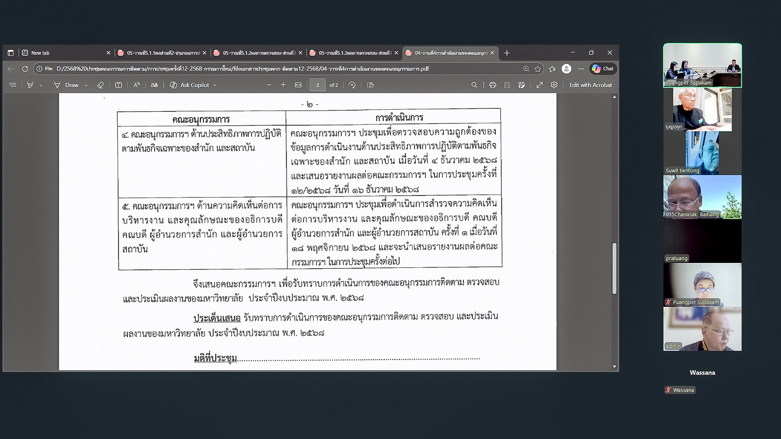 โดยมีวาระสำคัญที่ร่วมกันพิจารณา ได้แก่ การพิจารณาผลการตรวจสอบข้อมูลการดำเนินการของหน่วยงาน ปีงบประมาณ พ.ศ. 2568 (1 ตุลาคม พ.ศ. 2567 - 30 กันยายน พ.ศ. 2568) จากคณะอนุกรรมการ ประกอบด้วย ด้านผลสัมฤทธิ์ในการดำเนินงานตามยุทธศสตร์แผนปฏิบัติการมหาวิทยาลัย คณะ สำนัก และสถาบัน, ด้านประสิทธิภาพการปฏิบัติตามพันธกิจหลักของคณะ และด้านประสิทธิภาพการปฏิบัติตามพันธกิจของสำนัก และสถาบัน/การพิจารณากรรมการผู้รับผิดชอบเพื่อให้ความเห็นและข้อเสนอแนะ ผลการดำเนินงานของมหาวิทยาลัย คณะ สำนัก และสถาบัน ปีงบประมาณ พ.ศ. 2568 (1 ตุลาคม พ.ศ. 2567 - 30 กันยายน พ.ศ. 2568)/การพิจารณาเตรียมการติดตาม ตรวจสอบ และประเมินผลงานของมหาวิทยาลัย ปีงบประมาณ พ.ศ. 2569 (1 ตุลาคม พ.ศ. 2568 - 30 กันยายน พ.ศ. 2569)/การพิจารณากำหนดการประชุมคณะกรรมการติดตาม ตรวจสอบ และประเมินผลงานของมหาวิทยาลัยราชภัฏเทพสตรี ประจำปี พ.ศ. 2569/การพิจารณาการแต่งตั้งผู้ช่วยเลขานุการ