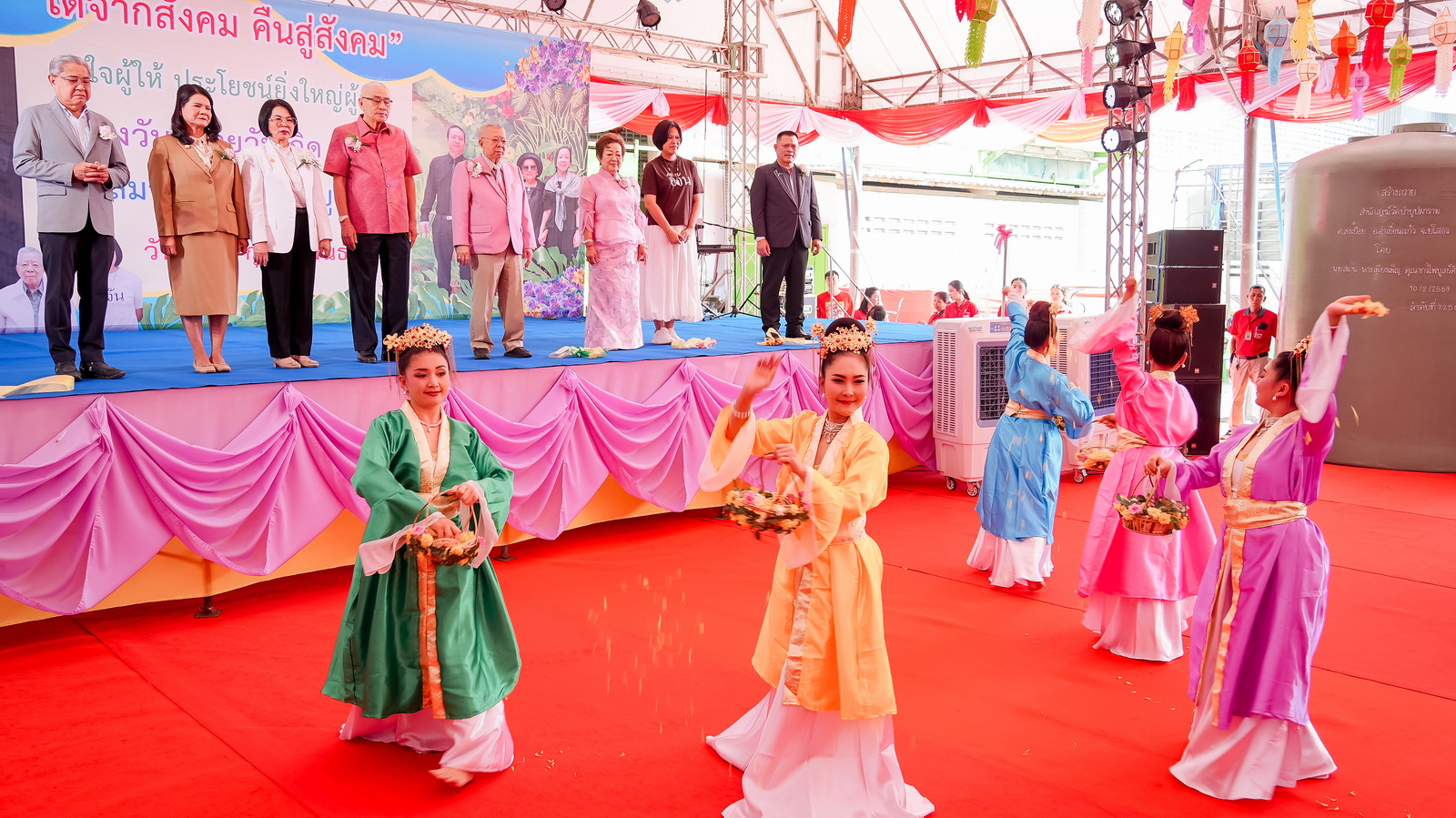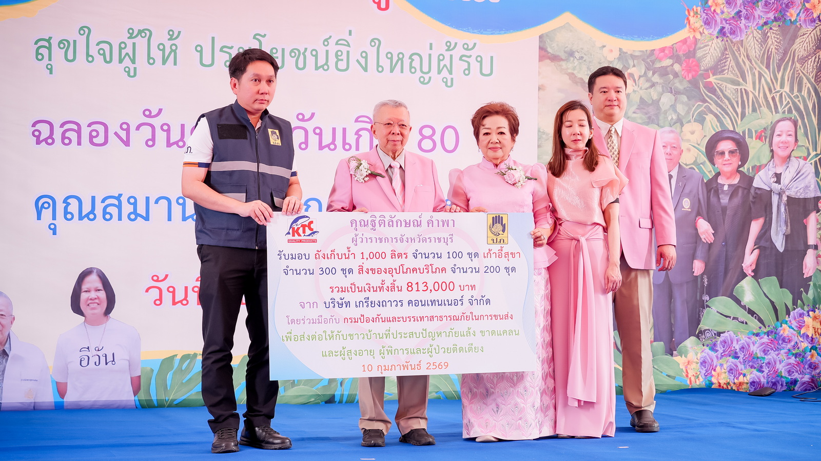 ภายในงาน คณะผู้บริหารและบุคลากรของมหาวิทยาลัย ได้ร่วมเป็นสักขีพยานและร่วมในพิธีมอบปัจจัยและสิ่งของเพื่อสาธารณกุศล ประกอบด้วย พิธีมอบเงิน เพื่อใช้ในการทำนุบำรุงศาสนสถาน - สนับสนุนภารกิจทางการแพทย์ และเพื่อเป็นทุนการศึกษาแก่นักศึกษาที่ขาดแคลนทุนทรัพย์, พิธีมอบถังน้ำ ขนาด 200 - 10,500 ลิตร, กล่องพลาสติกบรรจุสิ่งของอุปโภคบริโภค และเก้าอี้สุขาพลาสติกสำหรับผู้สูงอายุและผู้พิการ รวมมูลค่า 6,660,400 บาท และพิธีปล่อยขบวนรถบรรทุกถังน้ำและสิ่งของบริจาคเพื่อช่วยเหลือผู้ประสบภัยแล้ง ผู้ที่ขาดแคลน ผู้สูงอายุและผู้พิการ ในพื้นที่หลายจังหวัด ได้แก่ จังหวัดราชบุรี สมุทรสงคราม ตาก เชียงใหม่ กาฬสินธุ์ และร้อยเอ็ด รวม 6 จังหวัด เพื่อส่งต่อให้กับประชาชนผู้ที่อาจได้รับผลกระทบหรือเสี่ยงขาดแคลนน้ำอุปโภคบริโภคจากสถานการณ์ภัยแล้ง และเป็นการบรรเทาความเดือดร้อน ทั้งในด้านการเข้าถึงน้ำสะอาดเพื่อการอุปโภคบริโภค ซึ่งจะตอบสนองต่อความจำเป็นขั้นพื้นฐานของประชาชนได้อย่างเป็นรูปธรรม