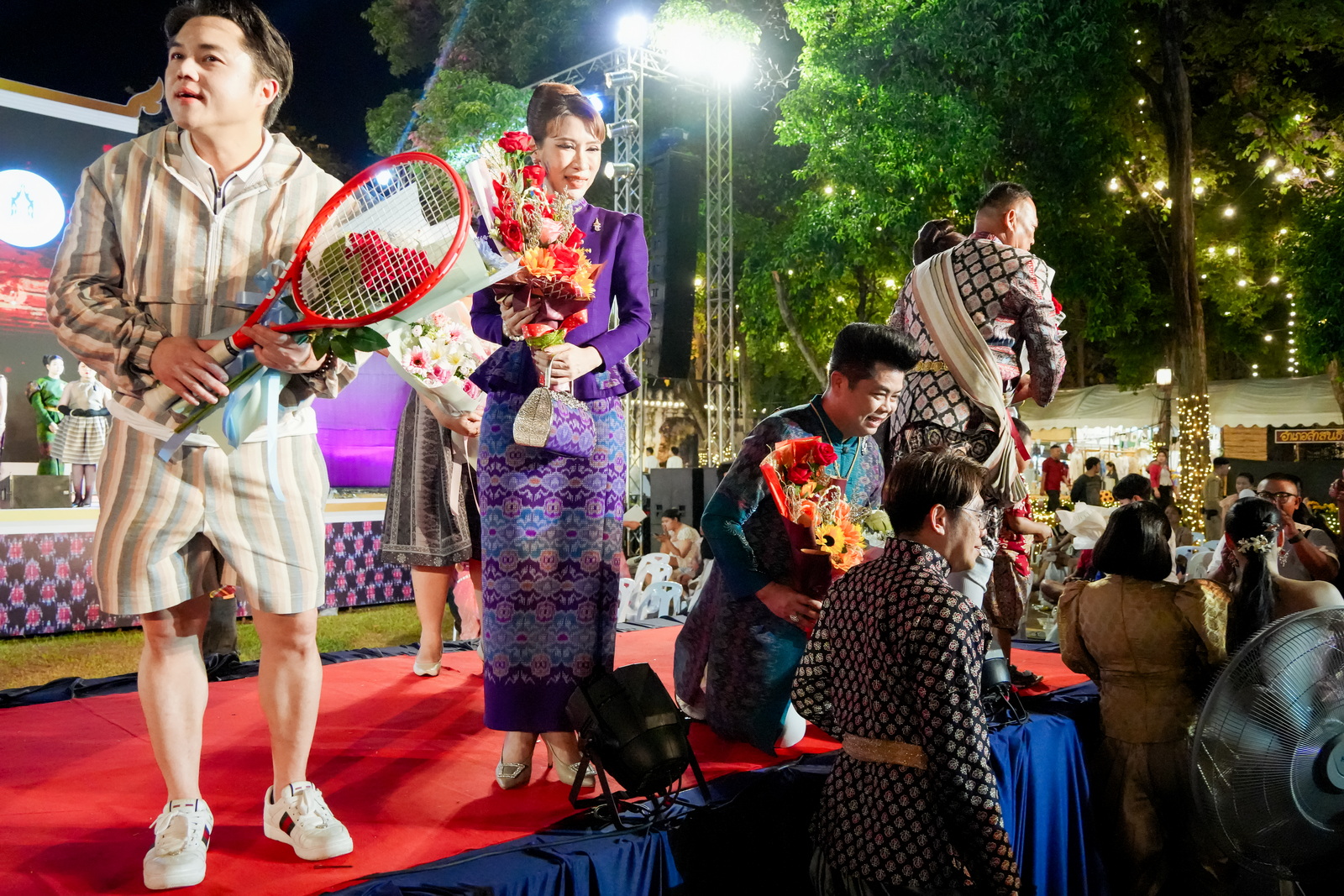 ผู้เดินแบบ "ผ้าทอเมืองละโว้ บ้านโคกเจริญ อำเภอโคกเจริญ จังหวัดลพบุรี" ได้แก่