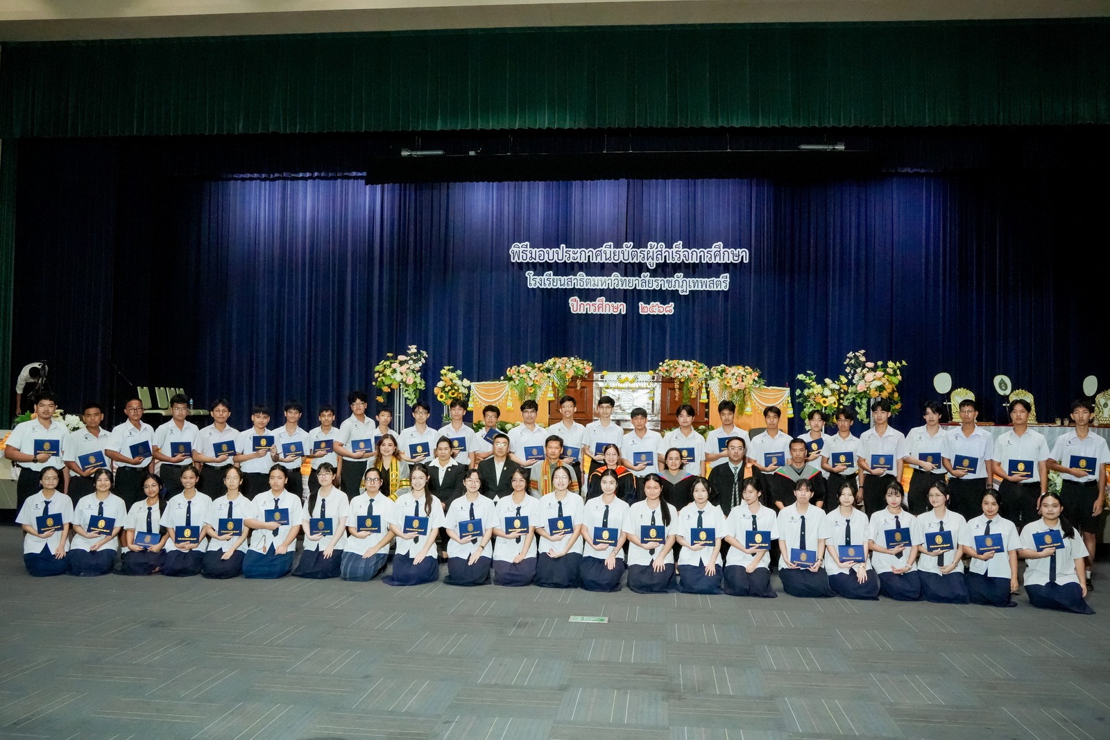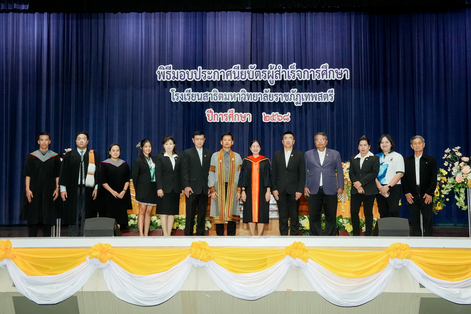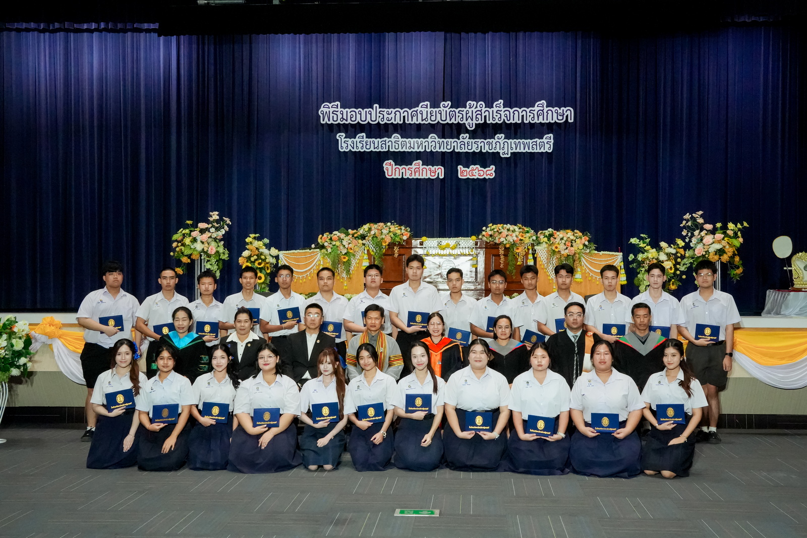 เมื่อวันที่ 27 กุมภาพันธ์ พ.ศ. 2569 ณ ห้องประชุมพระนารายณ์ ชั้น 4 อาคารรัตนเทพสตรี โรงเรียนสาธิตมหาวิทยาลัยราชภัฏเทพสตรี จัดให้มีพิธีมอบประกาศนียบัตรแก่ผู้สำเร็จการศึกษาจากโรงเรียนสาธิตมหาวิทยาลัยราชภัฏเทพสตรี ประจำปีการศึกษา 2568 โดยได้รับเกียรติจาก ผศ.ศศิวิมล สุทธิสาร รองอธิการบดีฝ่ายกิจการนักศึกษาและบริการวิชาการ มหาวิทยาลัยราชภัฏเทพสตรี เป็นประธานในพิธีมอบประกาศนียบัตร โดยในปีการศึกษานี้ มีนักเรียนที่สำเร็จการศึกษาในระดับชั้นมัธยมศึกษาที่ 3 และมัธยมศึกษาปีที่ 6 จำนวน 392 คน เข้ารับมอบประกาศนียบัตรเพื่อแสดงถึงความสำเร็จในก้าวสำคัญของการศึกษา