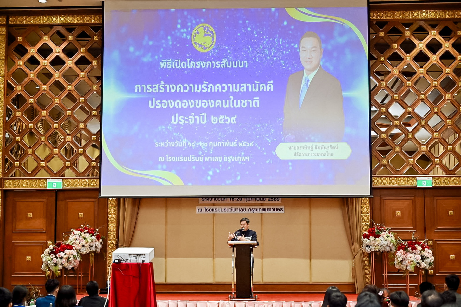 ระหว่างวันที่ 18 - 20 กุมภาพันธ์ พ.ศ. 2569 ณ โรงแรมปรินซ์พาเลซ กรุงเทพฯ คุณจริยา ทองคำ พยาบาลวิชาชีพ กองพัฒนานักศึกษา สำนักงานอธิการบดี นำผู้นำนักศึกษา เป็นตัวแทนมหาวิทยาลัยราชภัฏเทพสตรี เข้าร่วมโครงการสัมมนา "การสร้างความรัก ความสามัคคีปรองดองของคนในชาติ" ประจำปี พ.ศ. 2569 ซึ่งจัดโดยสำนักงานปลัดกระทรวงมหาดไทย สำหรับโครงการนี้จัดขึ้นโดยมุ่งเน้นให้นักเรียน นักศึกษา จากสถาบันการศึกษาต่างทั่วประเทศที่เข้าร่วมโครงการกว่า 300 คน ได้เปิดพื้นที่ในการพบปะ เรียนรู้ และอยู่ด้วยกันเพื่อร่วมกัน "แลกเปลี่ยน เรียนรู้ ถอดรหัส" การอยู่ร่วมกันอย่างเข้าใจ และการสร้างความสามัคคีปรองดองในโลกที่เปลี่ยนแปลงอย่างรวดเร็ว ท้าทาย และไร้พรมแดน โดยมี คุณอรรษิษฐ์ สัมพันธรัตน์ ปลัดกระทรวงมหาดไทย เป็นประธานพิธีเปิด