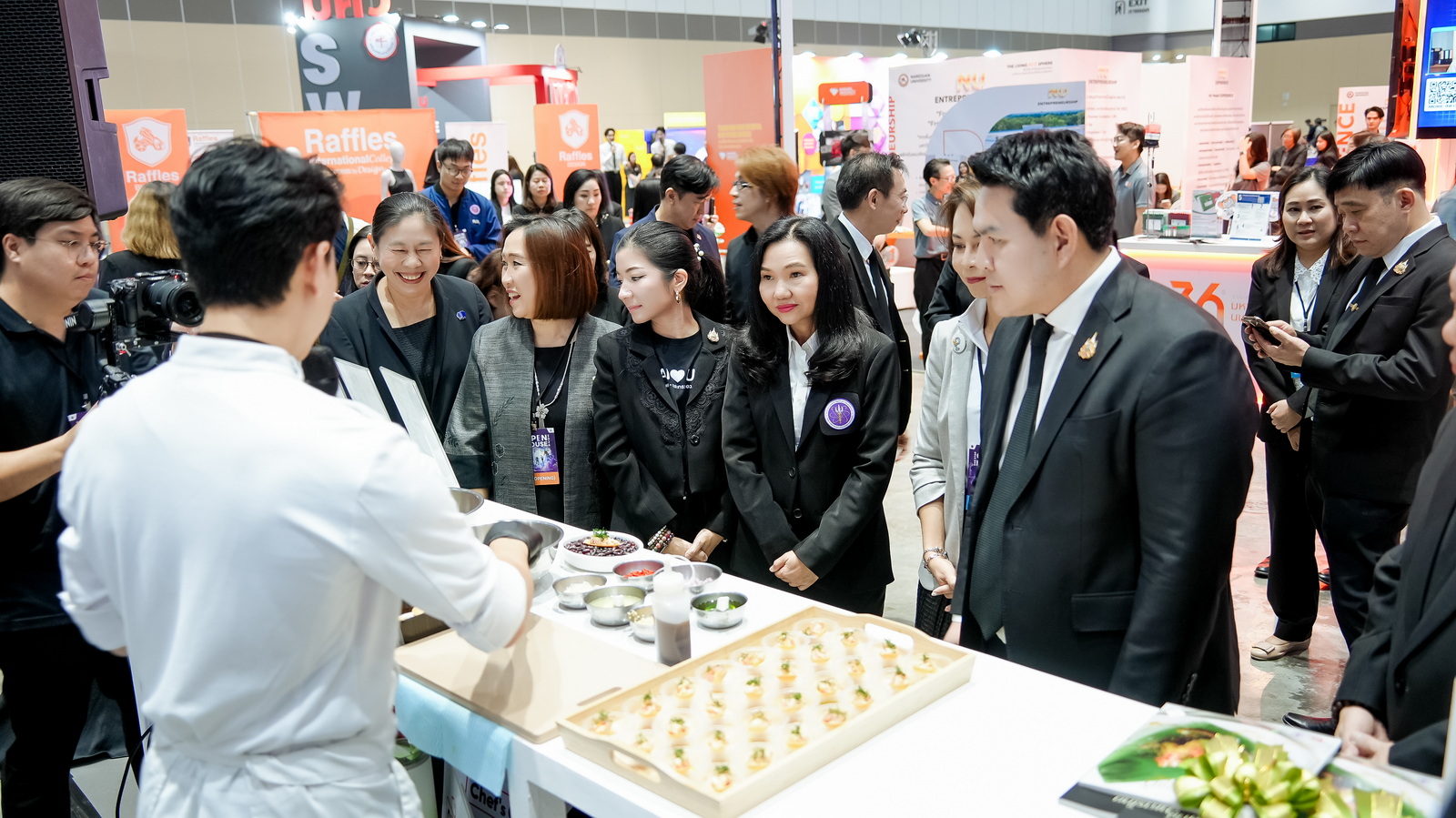 เมื่อวันที่ 6 มีนาคม พ.ศ. 2569 ณ ศูนย์การประชุมแห่งชาติสิริกิติ์ กรุงเทพฯ คุณอมรรัตน์ ระวิงทอง นักวิชาการศึกษา ชำนาญการ กองบริการการศึกษา พร้อมด้วย คุณกฤษณ ชูเชื้อ นักประชาสัมพันธ์ ชำนาญการ งานสื่อสารองค์กร กองกลาง, คุณเธียร วุฒิเกียรติไพบูลย์ นักวิชาการศึกษา, คุณฐิตินันท์ คำดี นักวิชาการศึกษา, คุณสุพิชฌาย์ สลุงใหญ่ นักวิชาการศึกษา และ คุณศิษฎิ ตริตรอง นักวิชาการศึกษา กองบริการการศึกษา สำนักงานอธิการบดี ร่วมเยี่ยมชมการจัดงาน ศึกษารูปแบบการจัดกิจกรรมเพื่อนำมาปรับใช้กับการพัฒนากิจกรรมแนะแนวและบริการการศึกษาของมหาวิทยาลัย และร่วมพิธีเปิดงานมหกรรมการศึกษา "One Stop Open House 2026" ภายใต้แนวคิด "One Mind, Open Future" มุ่งทลายกำแพงการศึกษา สร้างความเท่าเทียม และเตรียมความพร้อมเยาวชนไทยสู่การเป็น "กำลังคนแห่งอนาคต" พร้อมไฮไลต์แจกทุนการศึกษารวมกว่า 10,700 ทุน และจัดสอบ TCAS เสมือนจริง โดยมี คุณสุรศักดิ์ พันธ์เจริญวรกุล รัฐมนตรีว่าการกระทรวงการอุดมศึกษา วิทยาศาสตร์ วิจัยและนวัตกรรม เป็นประธานพิธีเปิด
