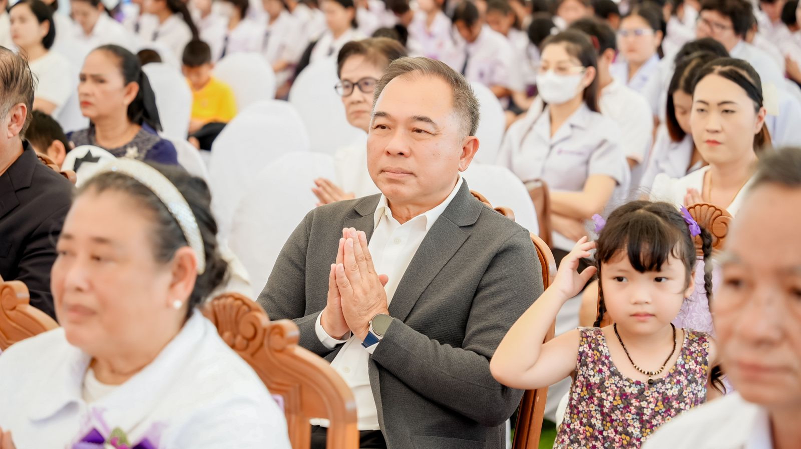 พิธีในครั้งนี้ได้รับความเมตตาจาก พระราชวัชรญาณรังษี เจ้าคณะจังหวัดสระบุรี (ธ) เจ้าอาวาสวัดพระพุทธแสงธรรม ให้เกียรติเป็นประธานฝ่ายสงฆ์ และมี คุณประยูร ศิริวรรณ รองผู้ว่าราชการจังหวัดลพบุรี เป็นประธานฝ่ายฆราวาส โดยมี ผู้บริหารสถานศึกษา หัวหน้าส่วนราชการ นักเรียน และแขกผู้มีเกียรติ ร่วมพิธีโดยพร้อมเพรียงกัน